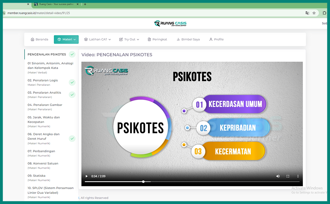 Kamu dapat mengakses e-course 24 jam non stop tidak berbatas waktu, sehingga kamu dapat belajar dan berlatih secara rutin sampai mencapai nilai yg maksimal.